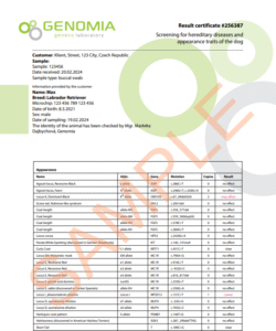 The E locus controls whether a dog can produce dark pigment. E allows black or brown eumelanin, while e/e blocks it and creates red–yellow coats using pheomelanin. The e/e genotype also masks patterns from the K and A loci. Other E variants exist in specific breeds but aren’t included in this test.